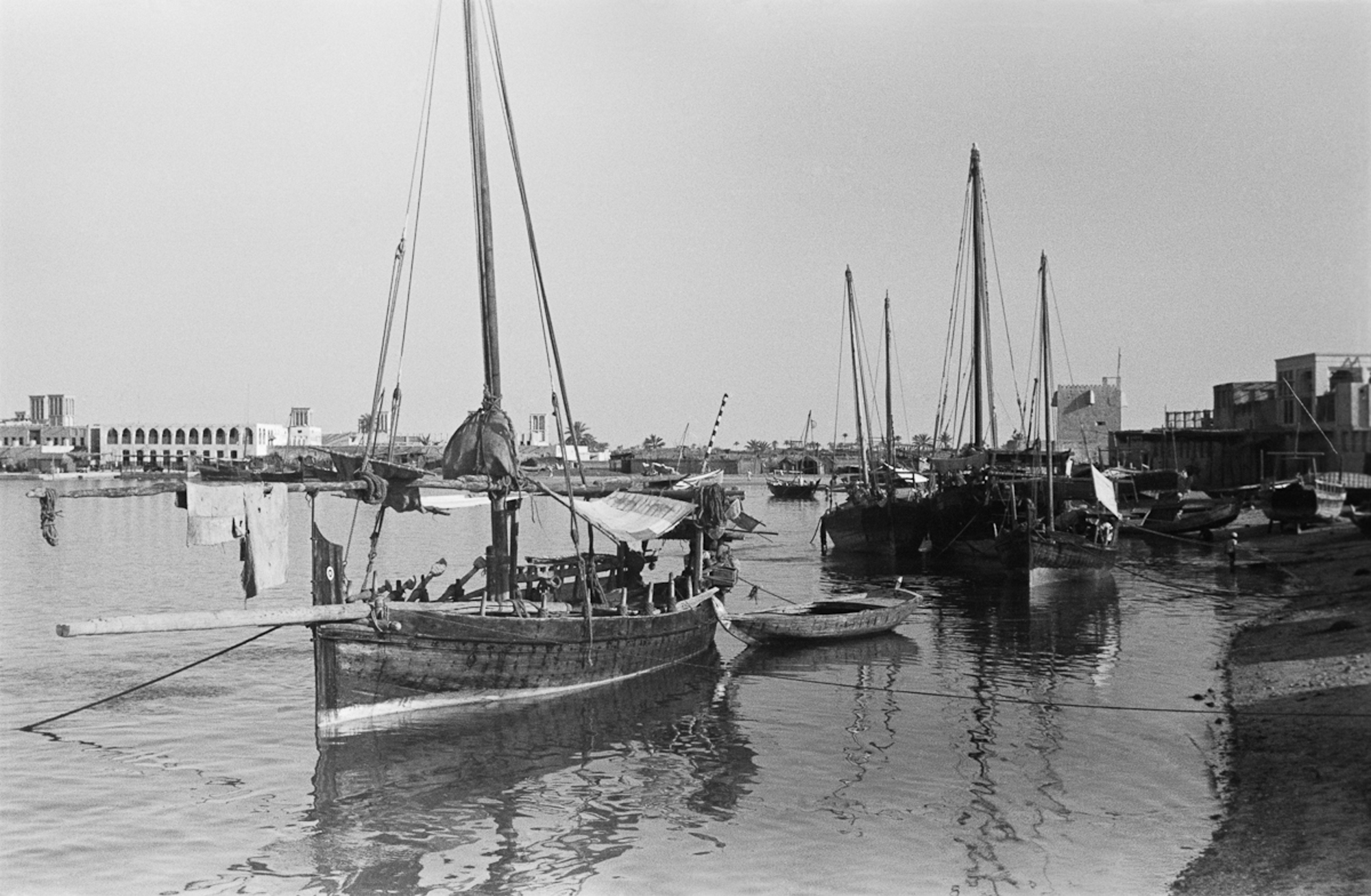 Dubai Creek was the beating heart of the city in the late 1940s. Markets (souqs) lined the shores and goods were constantly being taken to and from large ships in deeper water. Photocredit: Wilfred Thesiger, Pitt Rivers Museum, University of Oxford
