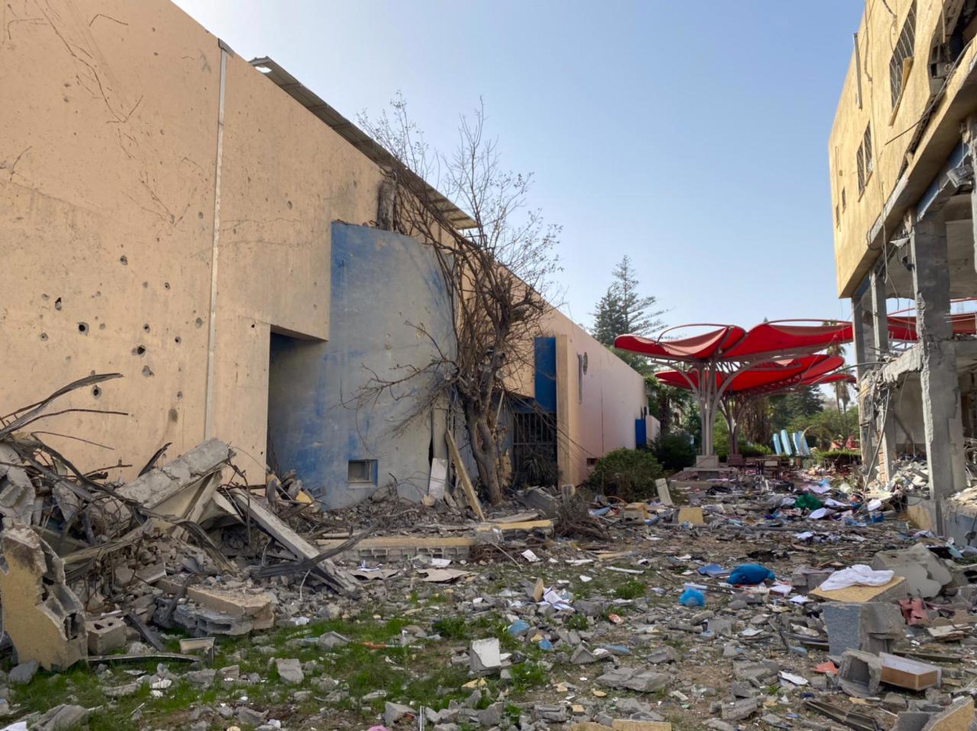 Meanwhile, at the Al-Fakhour School, which has become a refuge in Jabalia Refugee Camp in the northern Gaza Strip, performing arts trainer Ahmad Tafesh has been teaching children how to sing songs and play rhythms with simple tools, such as wooden objects and empty food utensils.